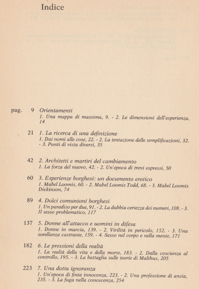 Peter GAY, L’educazione dei sensi. L’esperienza borghese dalla regina Vittoria, a Freud, Feltrinelli, 1986. Indice del libro