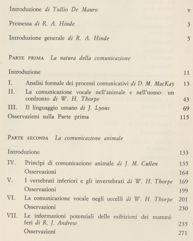 R. A. HINDE, introduzione di Tullio De Mauro, La COMUNICAZIONE NON-VERBALE, Laterza, 1974. Indice del libro