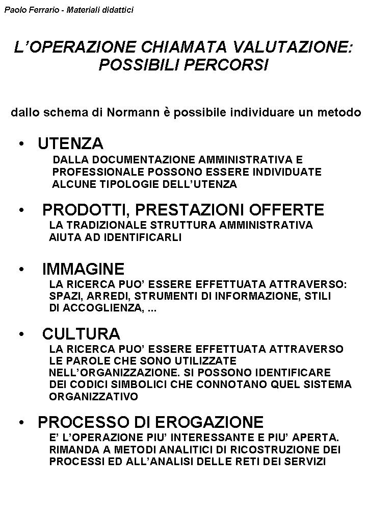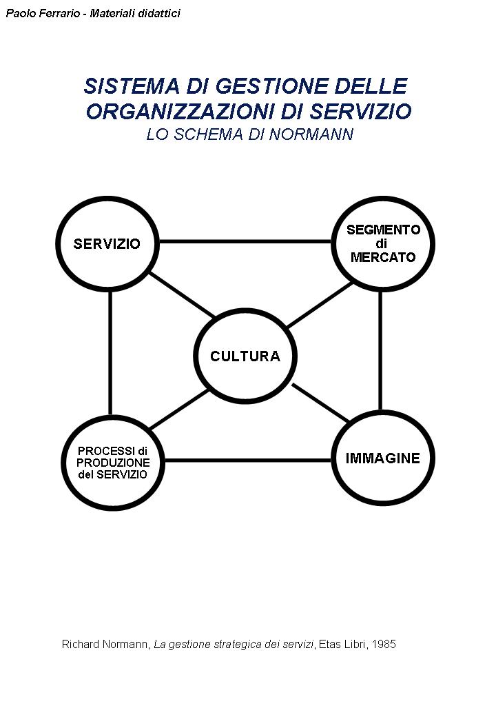 Paolo Ferrario/Mappe cognitive e grafici per la formazione: LE ORGANIZZAZIONI. Lo schema di Richard Normann, La gestione strategica dei servizi, Etas Libri, 1985