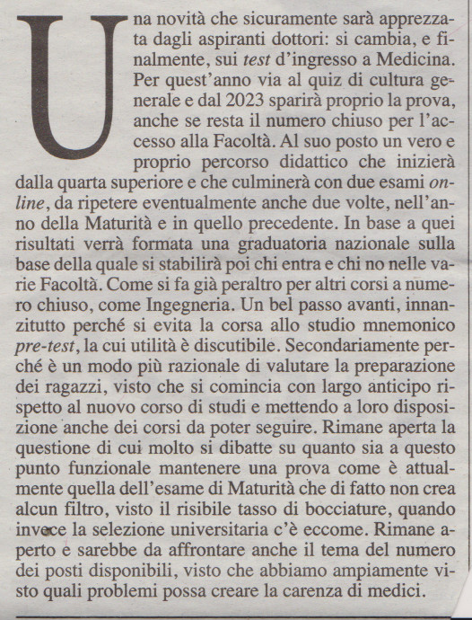 Cambia il test per Medicina, articolo di Annalisa Grandi in La Ragione