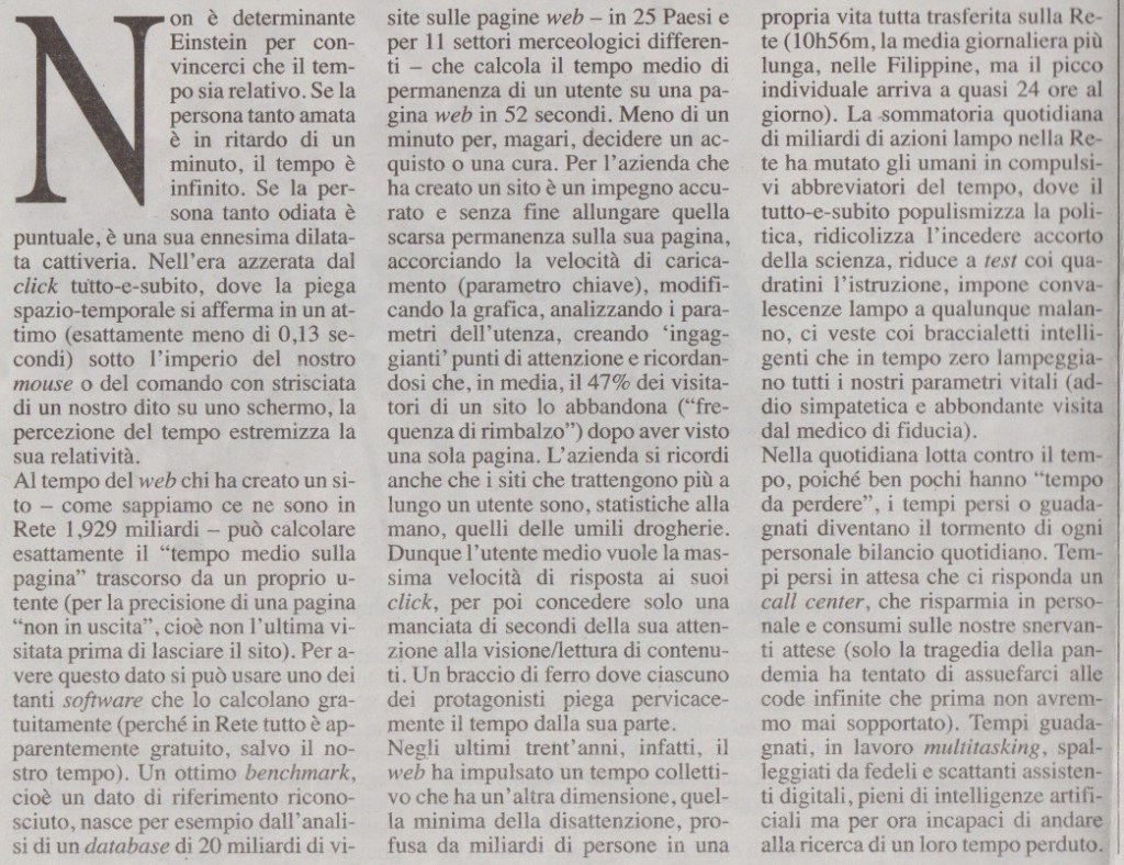 l’altra dimensione del TEMPO al tempo del WEB, di Edoardo Fleischner in La Ragione 22.2.22
