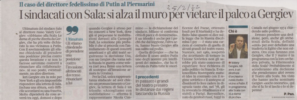 L’ultimatum il giorno dopo la prima de “La Dama di Picche”, ma il professionista russo si è sempre dichiarato molto vicino alle posizioni dello zar