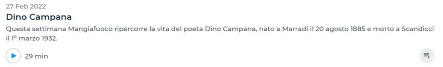 Biografia di DINO CAMPANA, Audio in Mangiafuoco sono io, Radio 1, 27 febbraio 2022
