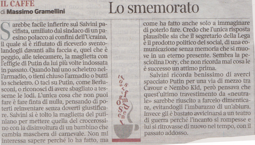 “Fra Putin e Renzi io scelgo Putin tutta la vita. Putin lo vorrei domani mattina come presidente del Consiglio”. Matteo Salvini, 3 dicembre 2014