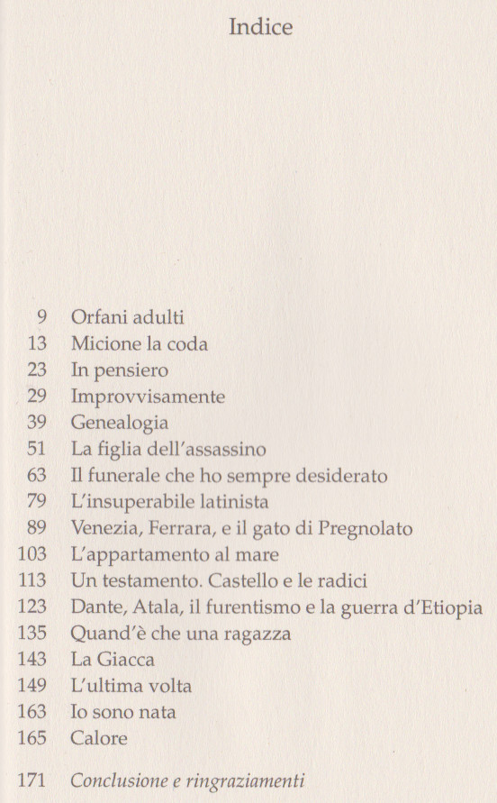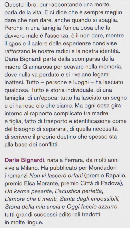 Bignardi Daria, Non vi lascerò orfani, Mondadori, 2019. Indice del libro
