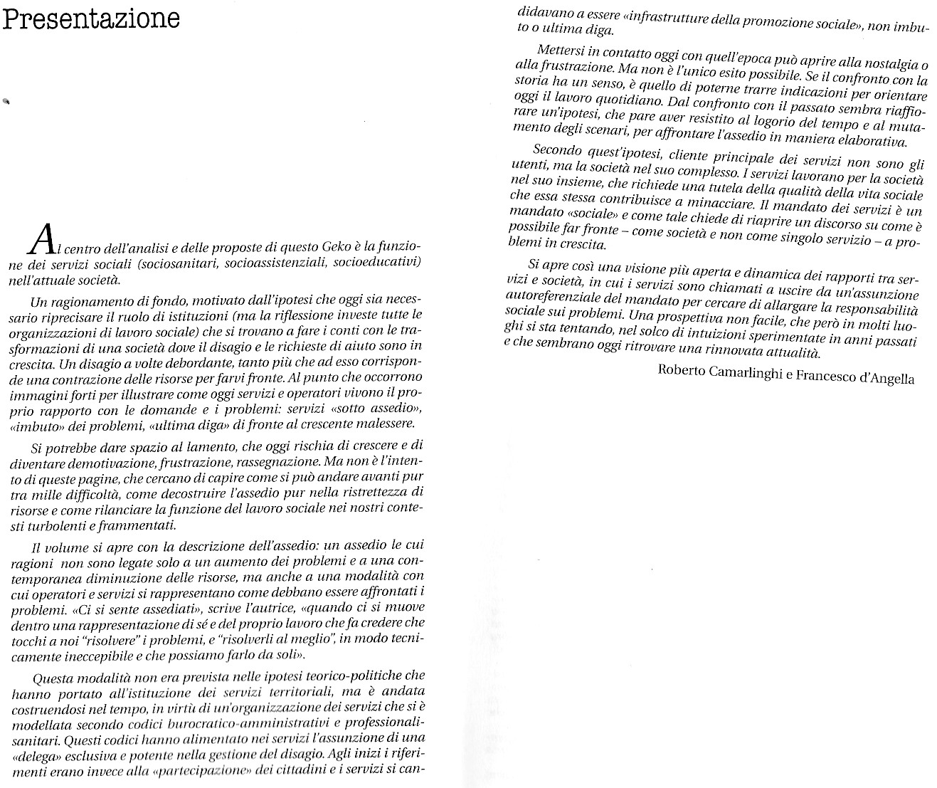 Franca Olivetti Manoukian, Re / immaginare il lavoro sociale, I Geki di Animazione sociale, pagg. 96. Supplemento al n. 1/2005 di Animazione sociale. Indice del libro