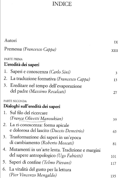 Ogni erede sa che i saperi che provengono dalla storia passata, personale e collettiva, ripropongono un’ancestrale domanda di desiderio e fedeltà, di differenza e ripetizione.
