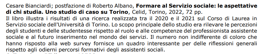 Cesare Bianciardi, Formare al servizio sociale. Uno studio sul caso di Torino, Celid editore, 2022