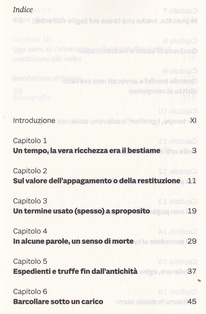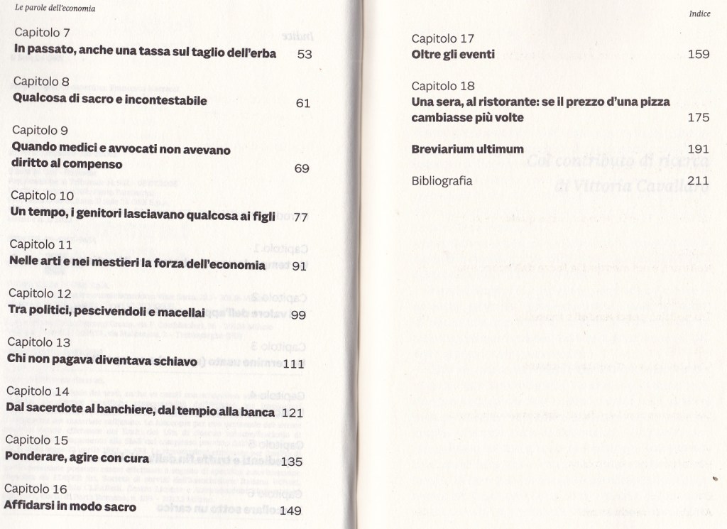 Mercadante Francesco, Le parole dell’economia. Viaggio etimologico nel lessico economico, Il Sole 24 Ore, 2022. Indice del libro
