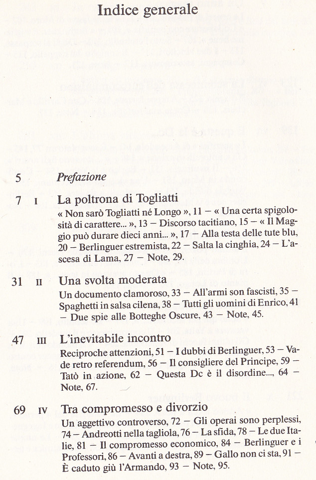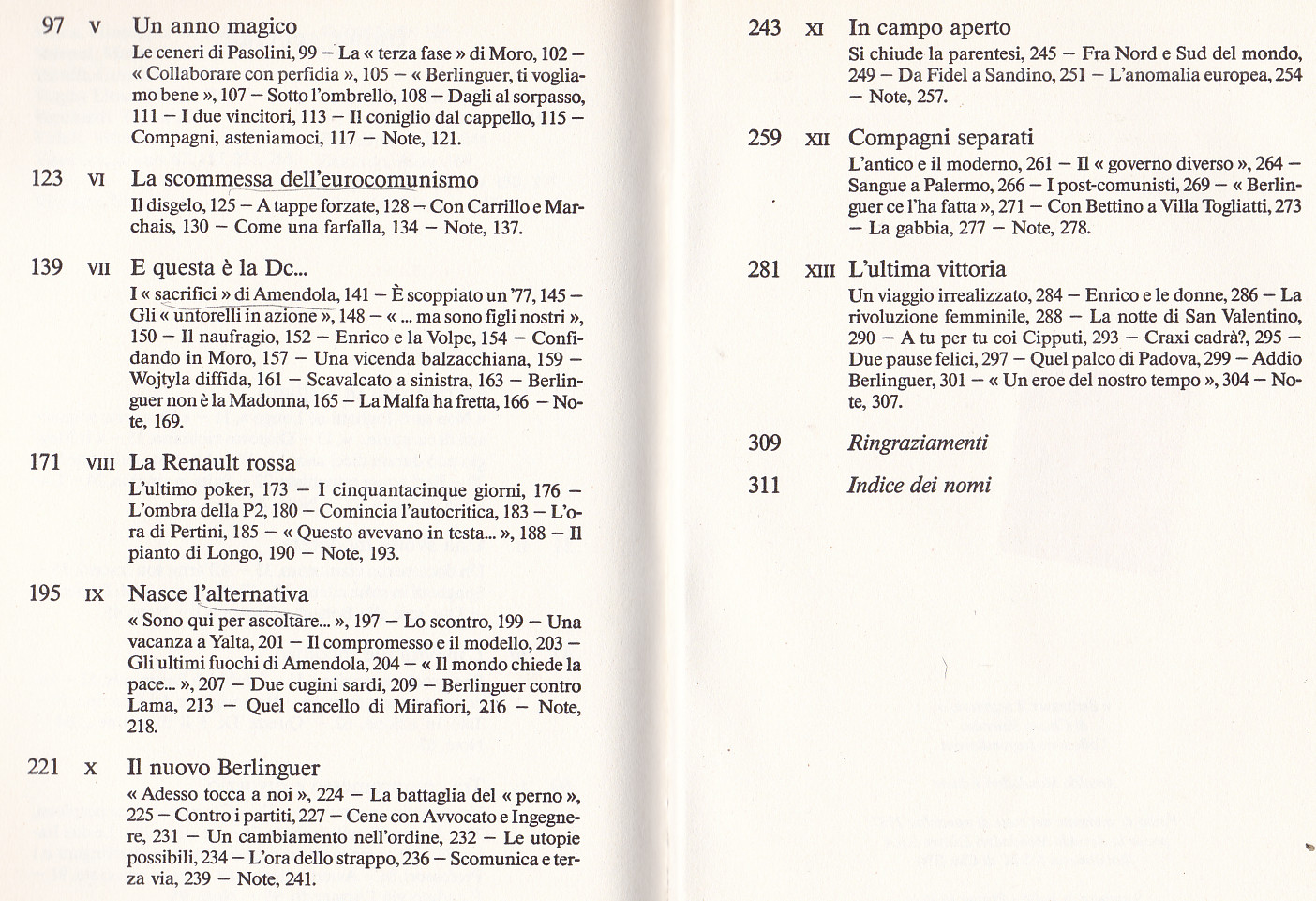Chiara Valentini, Berlinguer, il segretario, Mondadori, 1987. Indice del libro