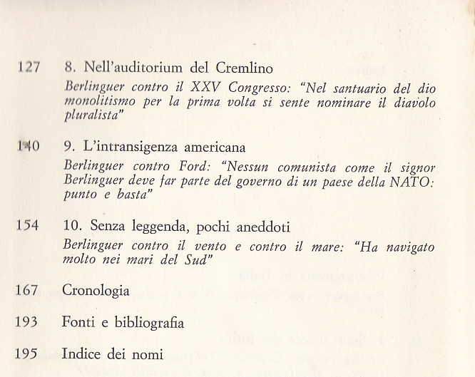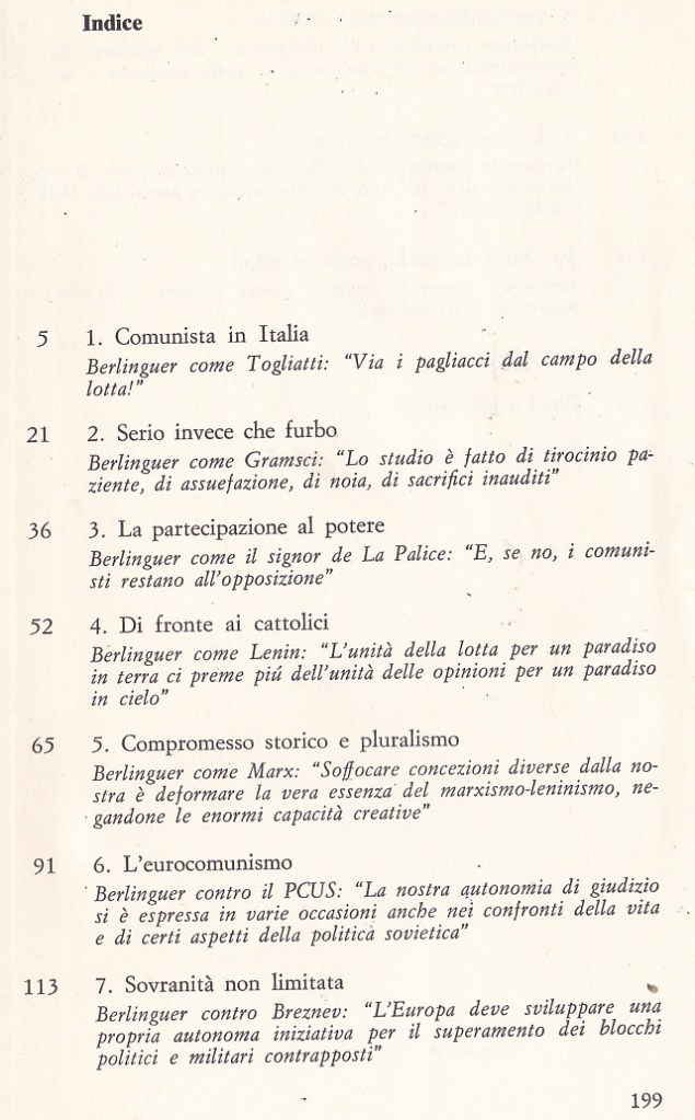 Vittorio Gorresio, Berlinguer, Feltrinelli editore, 1978. Indice del libro