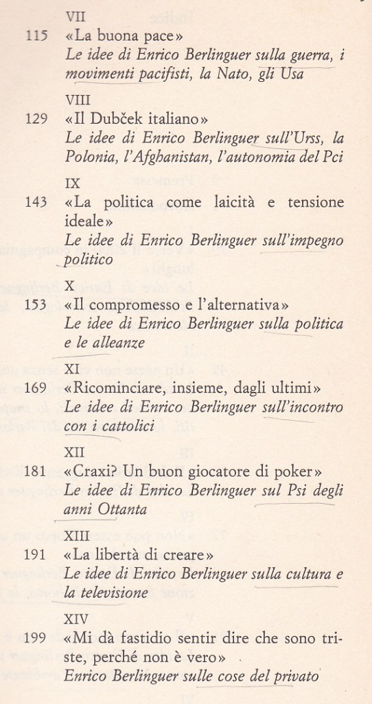 Walter Veltroni, La sfida interrotta. Le idee di Enrico Berlinguer, Baldini&Castoldi, 1994. Indice del libro