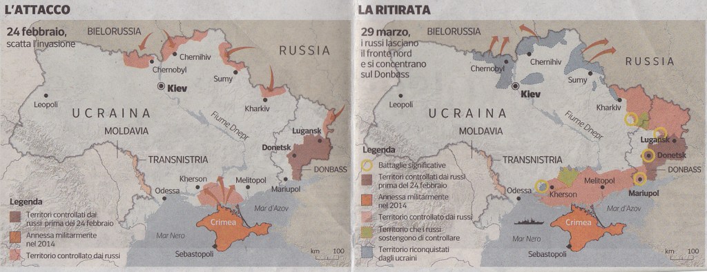 Fasi della invasione russa in UCRAINA, mappe in Corriere della Sera 3 giugno 2022