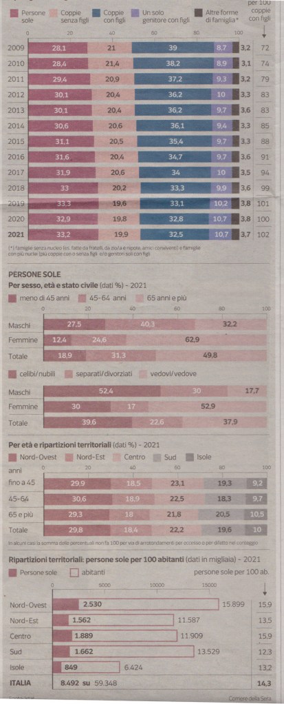 Come cambiano le famiglie, tabelle a cura dell’Istat