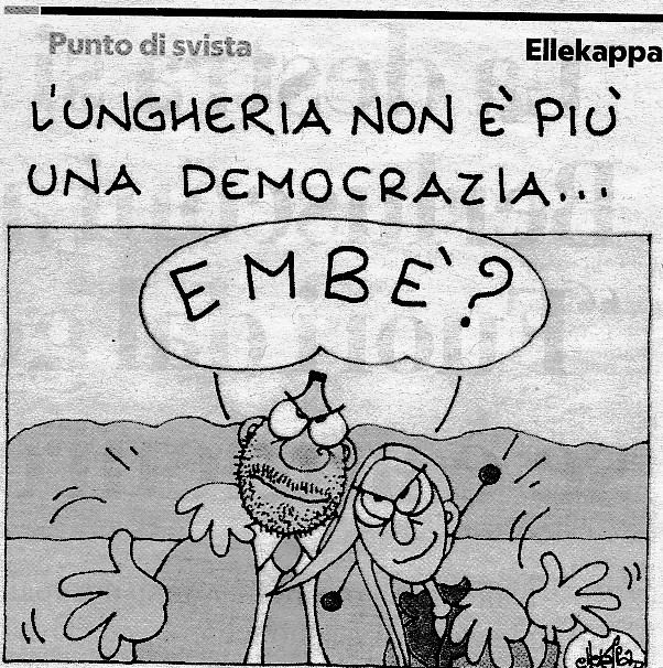 L’Ungheria non è più una democrazia … melonfasci e nazisalv: EMBE’ ?, Ellekappa in La Repubblica 16 sett 2022