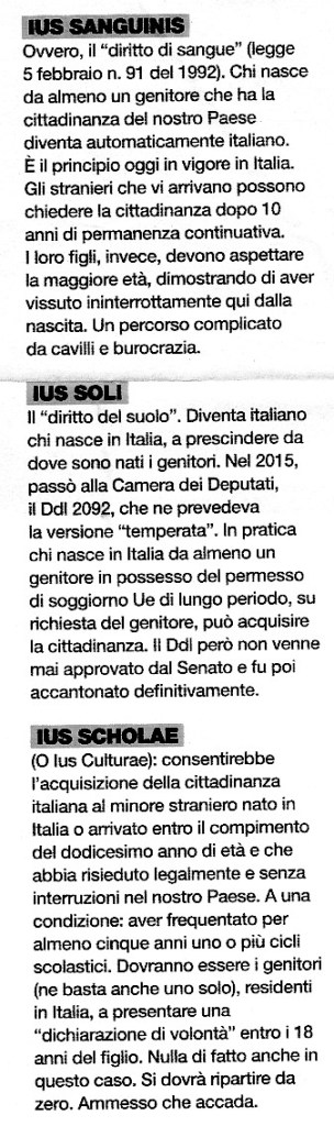 IUS SANGUINIS; IUS SOLI; IUS SCHOLAE (o ius culturae): definizioni