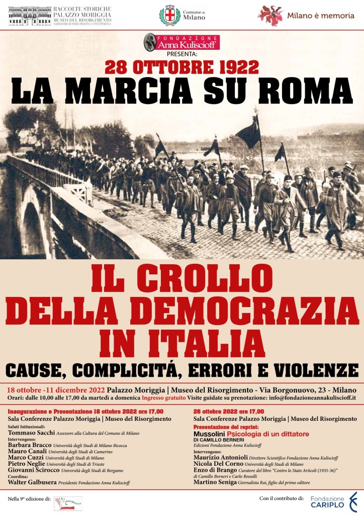 28 ottobre 1922: la marcia su Roma, il crollo della democrazia in Italia, convegno della Fondazione Anna Kuliscioff, 18 ottobre-11 dicembre 2022 al Palazzo Moriggia / Museo del Risorgimento Via Borgonuovo 23, MILANO