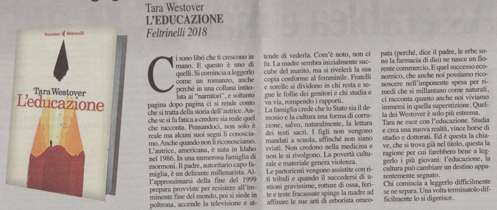 Tara Westover, L’educazione, Feltrinelli, 2018