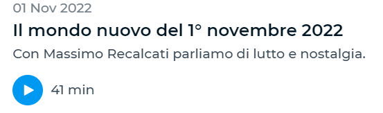 Lutto e nostalgia, conversazione con Massimo Recalcati, Il mondo nuovo/Rai Radio 1, 1 novembre 2022