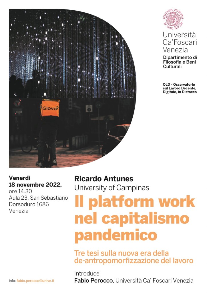 “Il platform work nel capitalismo pandemico: 3 tesi sulla nuova era della de-antropomorfizzazione del lavoro” – Ricardo Antunes, University of Campinas.