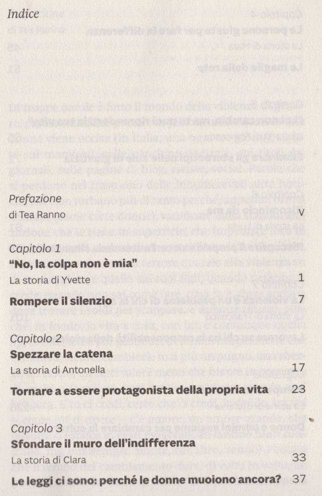 Di Cristoforo Chiara, Rossitto Simona, Ho detto no. Come uscire dalla violenza di genere, Il Sole 24 Ore, 2022. Indice del libro