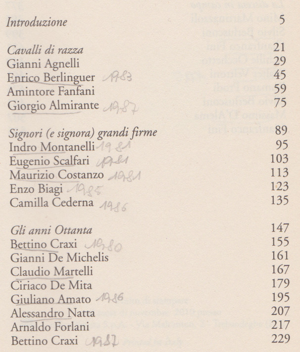 Giovanni Minoli, con Piero A. Corsini, La storia sono loro. Faccia a faccia con trent’anni di attualità, Rizzoli/Rai Eri, 2010. Indice del libro