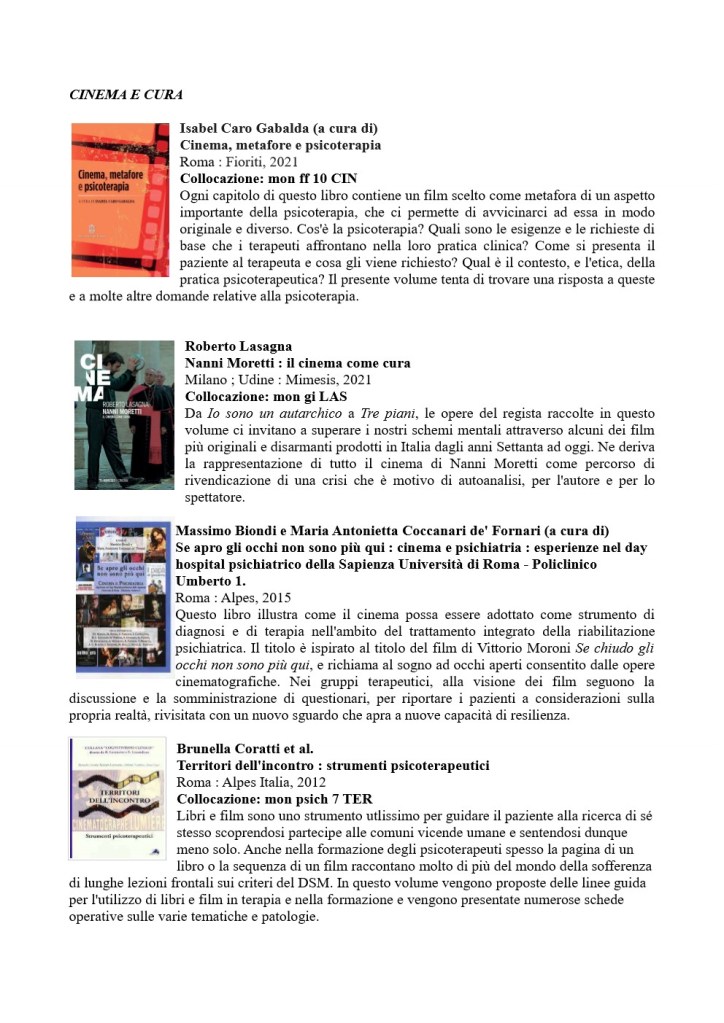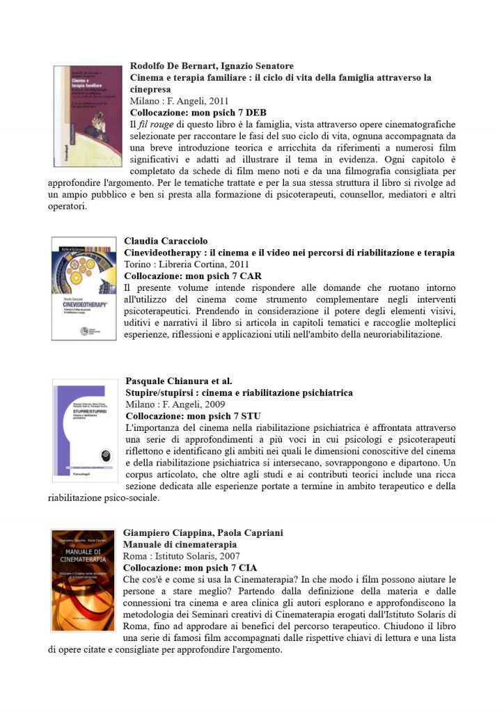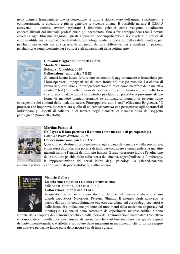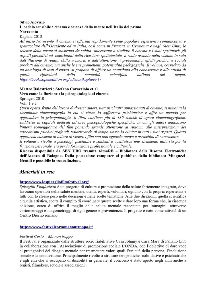 L’ultimo dei percorsi bibliografici è dedicato al tema “cinema e salute mentale”.