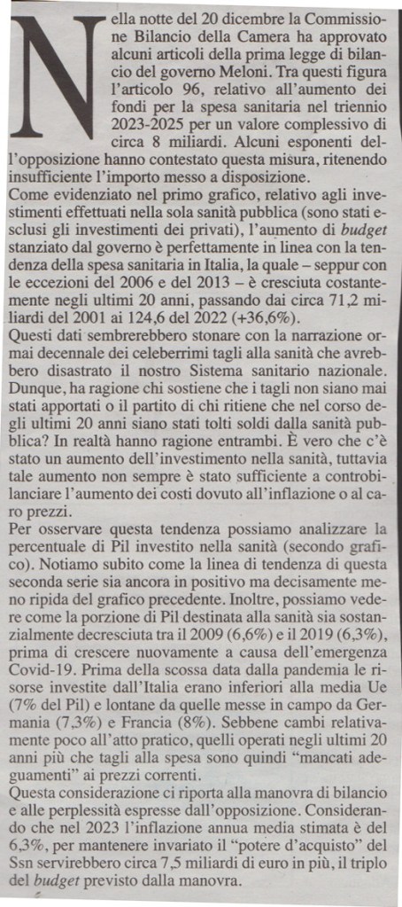 Spesa sanitaria 2023-2025 alla Commissione Bilancio della camera