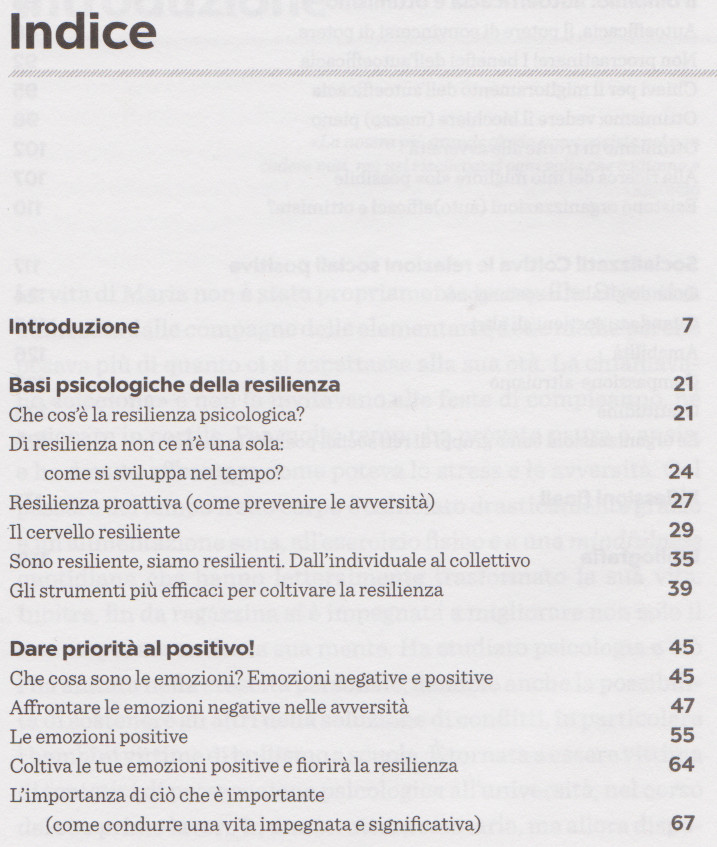Salanova Marisa, Resilienza. Riflessioni dopo una caduta, Emse edizioni, 2023. Indice del libro