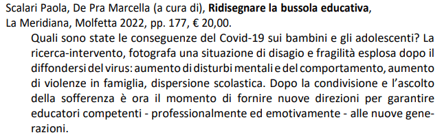 Scalari Paola, De Pra Marcella (a cura di), Ridisegnare la bussola educativa, La Meridiana, Molfetta, 2022
