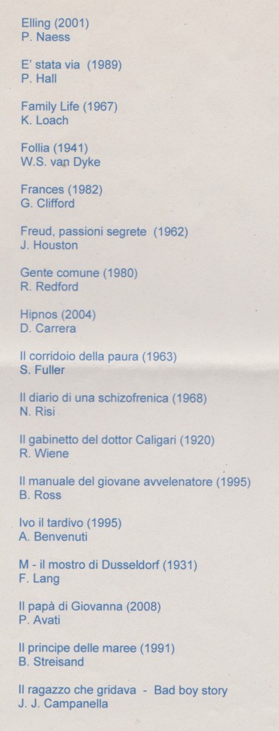 un elenco di film in tema di MALATTIA MENTALE (1963-2008)