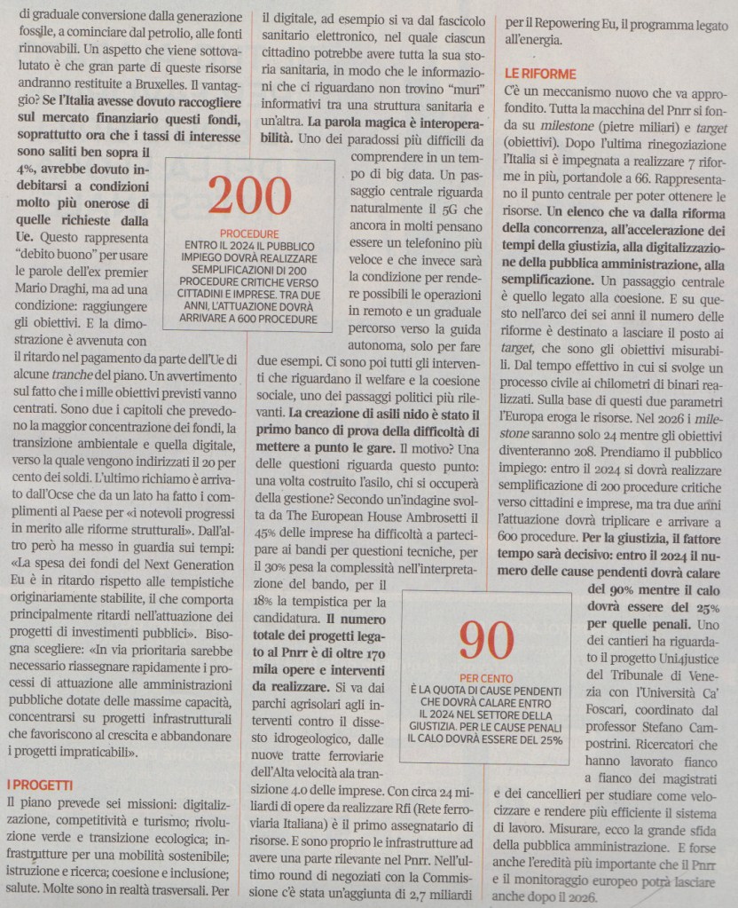 PNRR, Guida semplice al Piano, di Nicola Saldutti, in Sette / Corriere della Sera, 22 dicembre 2023