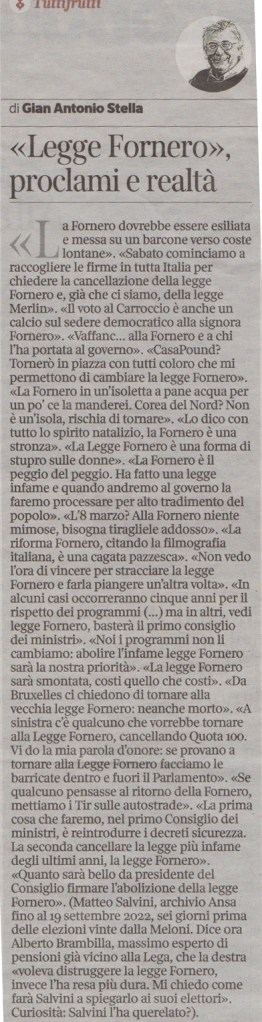 Dice ora Alberto Brambilla, massimo esperto di pensioni già vicino alla Lega, che la destra «voleva distruggere la legge Fornero, invece l’ha resa più dura. Mi chiedo come farà Salvini a spiegarlo ai suoi elettori»