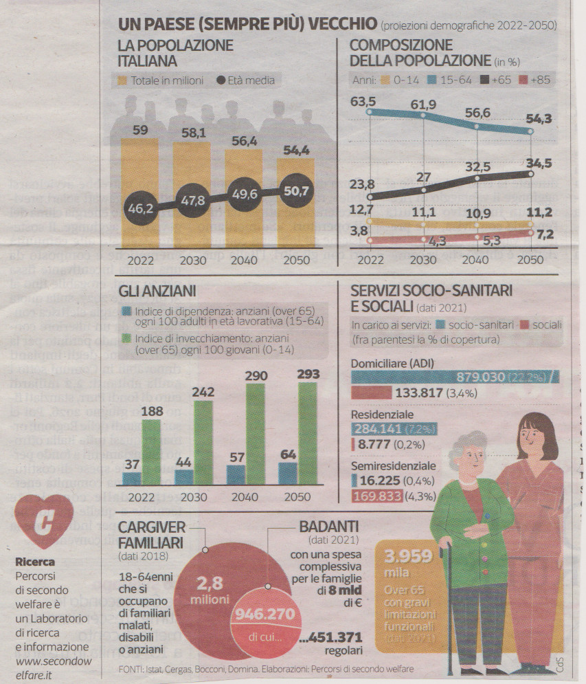 Demografia: un paese (sempre) più vecchio. Dati statistici su: popolazione italiana, anziani, servizi socio-sanitari; caregiver; badanti