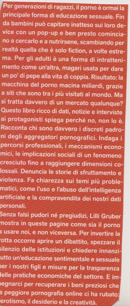 La giornalista Lilli Gruber ci conduce attraverso un approfondito studio di una tendenza contemporanea che sta lasciando un’impronta profonda nelle vite di molte persone: la pornografia, un fenomeno che coinvolge non solo gli attori e i lavoratori del settore, come talvolta si potrebbe pensare, ma che ha un impatto su una realtà ben più ampia.