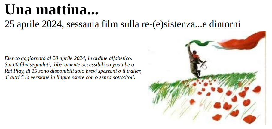 Una mattina …, 25 aprile 2024, sessanta film sulla re-(e)sistenza … e dintorni, a cura di Andrea Pancaldi