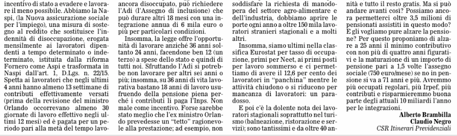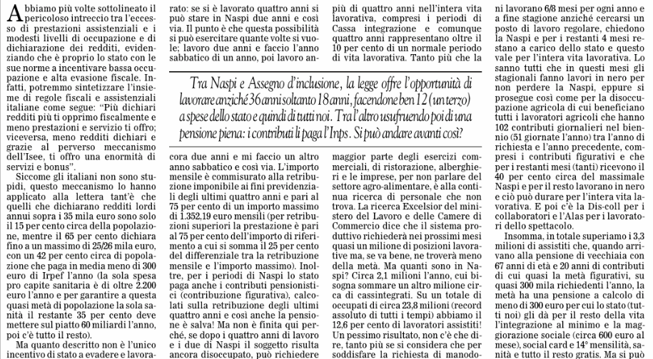 L’intreccio perverso tra assistenzialismo e lavoro nero, articolo di Alberto Brambilla e Claudio Negro, in il Foglio 28 agosto 2024