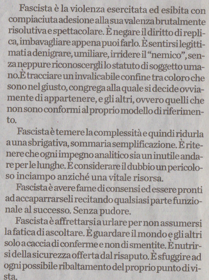 “Cos’è fascista “”, citazione da: Paolo Lipari, Cara serie Tv un po’ fascista, in La Provincia di Como, 20 gennaio 2025, pagine 1 e 5