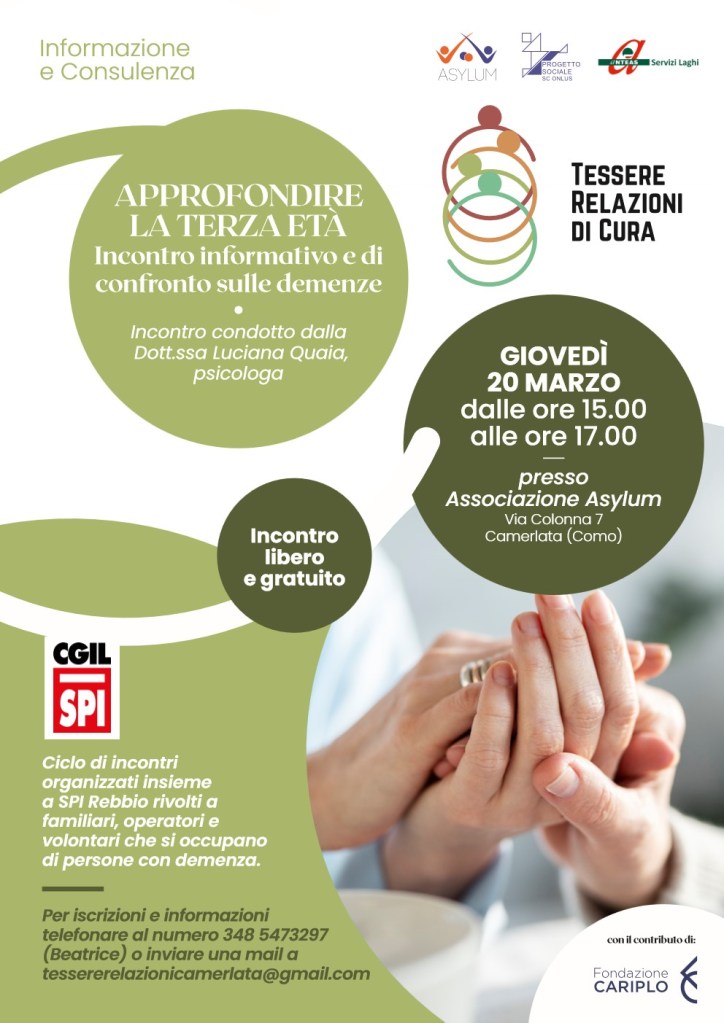 pensando di fare cosa gradita, comunichiamo che, nell’ambito del progetto Tessere Relazioni di Cura, la Cooperativa PROGETTO SOCIALE (Cantù/Como) organizza
