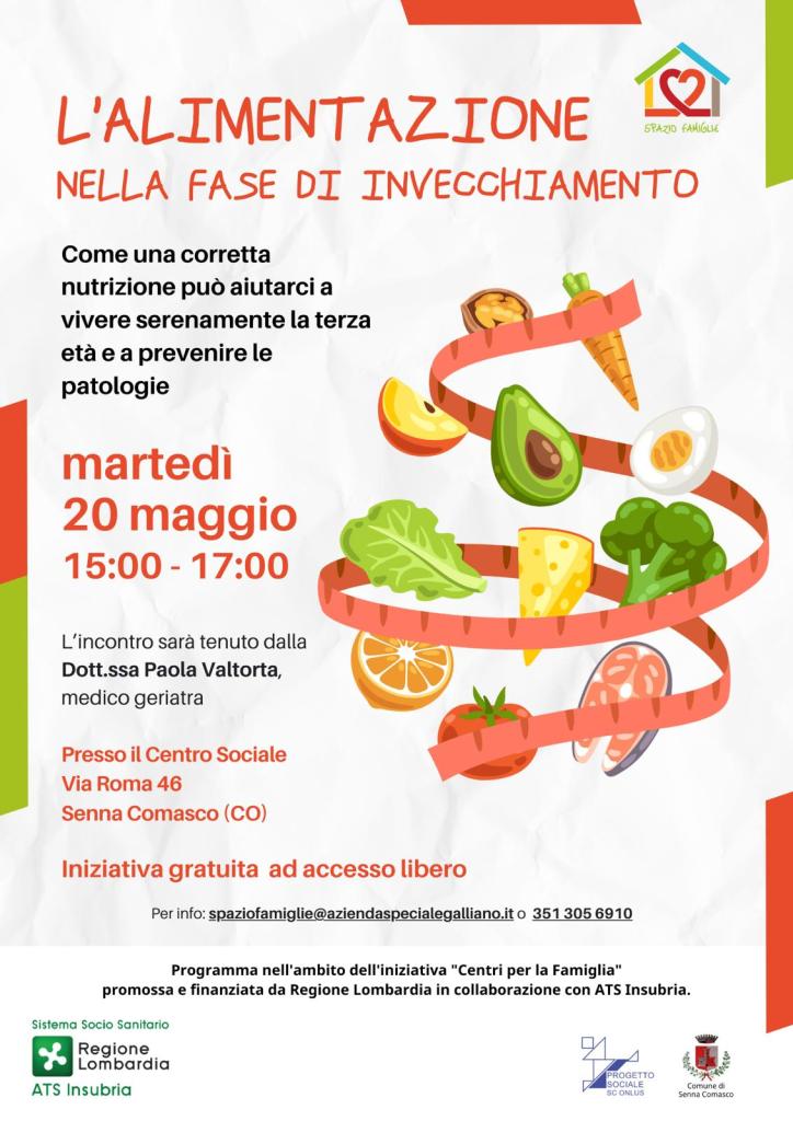 incontro informativo sull’alimentazione nella Terza Età, 20 maggio 2025 a Senna Comasco (Como) nell’ambito dell’iniziativa  “Centri per la famiglia” dell’ azienda sociale Galliano di Cantù