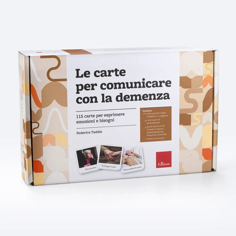 “Le carte per comunicare con la demenza” di Federica Taddia, pubblicate da Erickson nel 2025, sono un set di 115 carte illustrate progettate per facilitare la comunicazione con persone affette da demenza o altre patologie neurologiche che presentano difficoltà cognitive e di linguaggio.